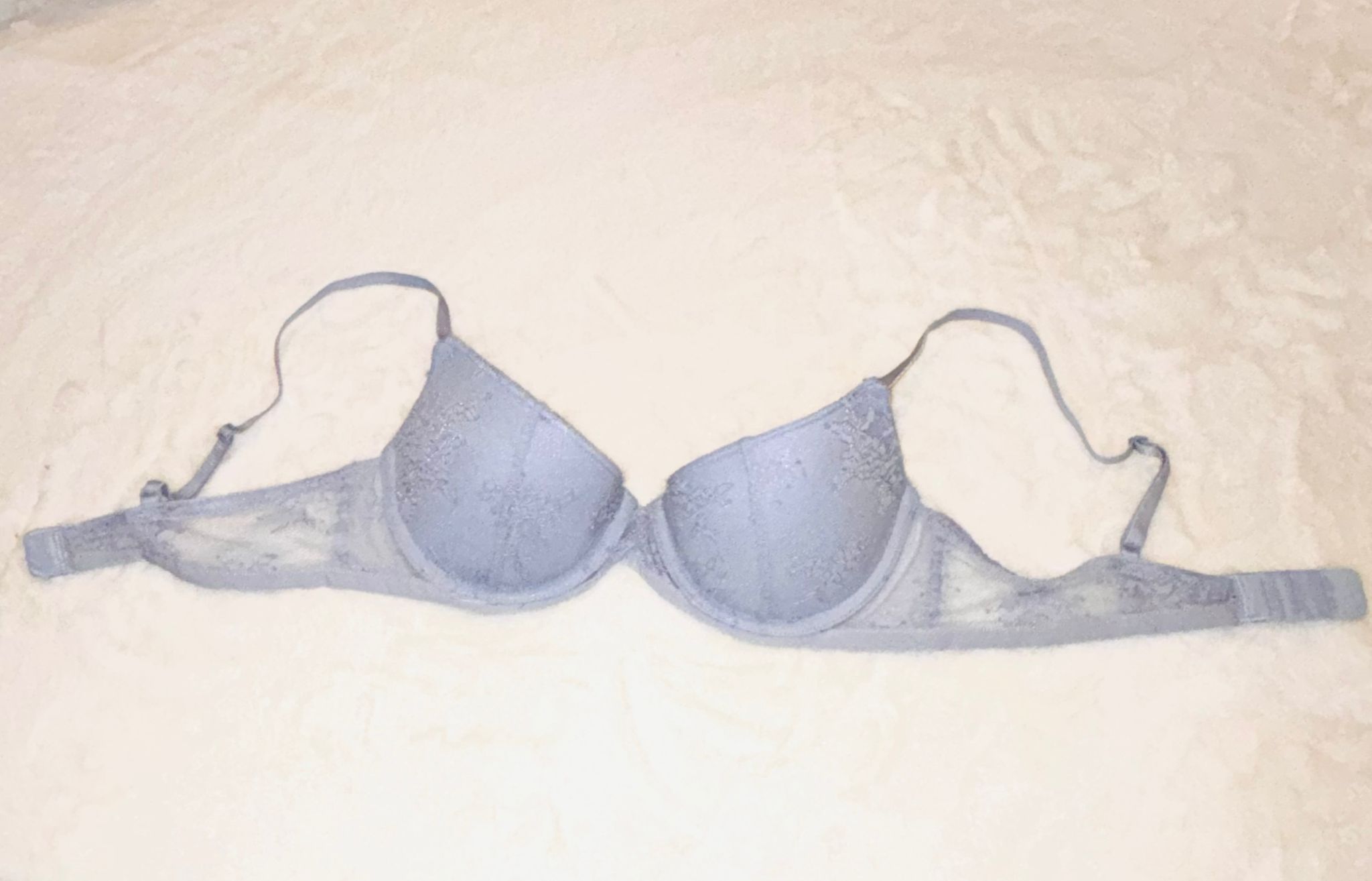 Ein hellblauer BH, der sofort an intime Momente erinnert. Das weiche Material schmiegt sich eng an und betont die natürliche Form meiner Brüste auf eine zarte, aber unglaublich verführerische Weise.