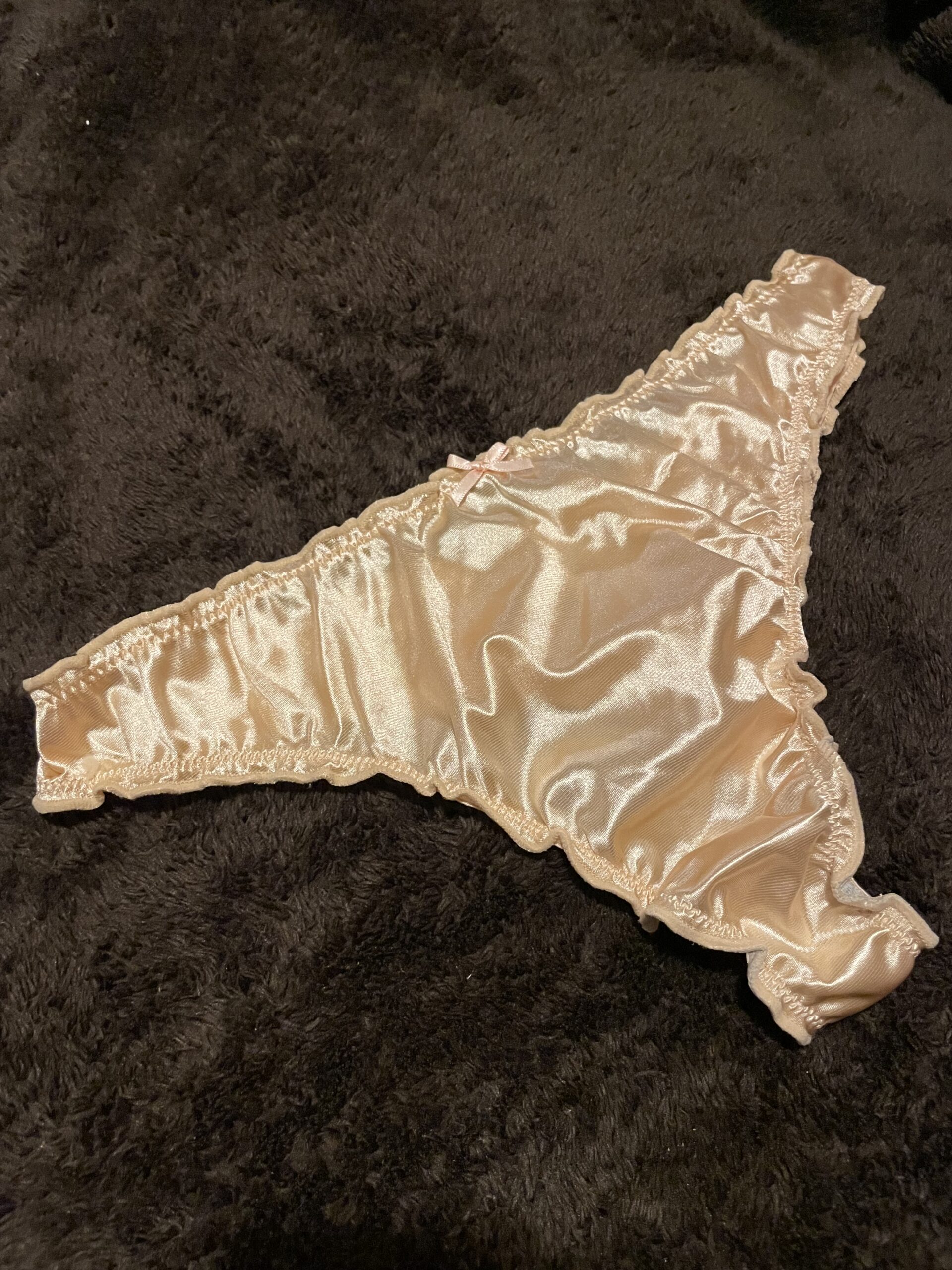 Mit diesem seidigen Slip wird es bei dir so richtig schön flutschen. Und ich mache ihn extra feucht für dich😏🔥 Schnappe dir jetzt meinen süßen Muschi-Duft 🥰