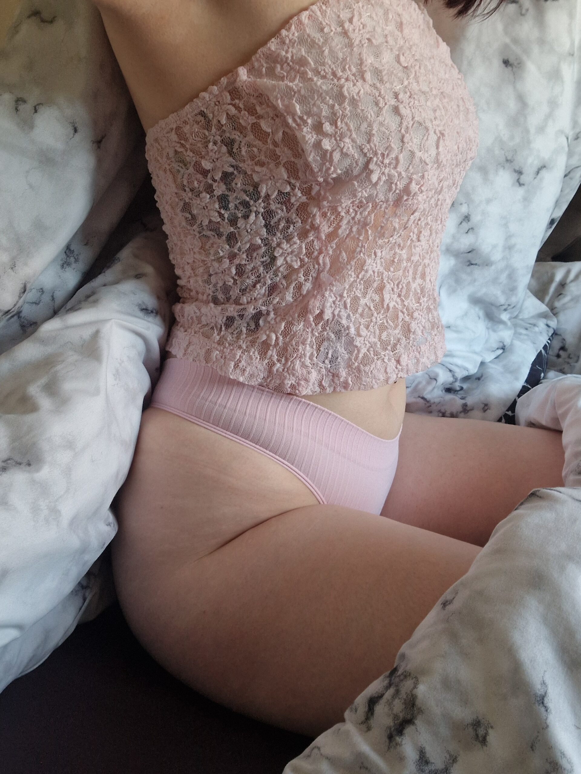 Zartes, unschuldiges Rosa auf meiner Haut.. ganz einsam in meinem, kuscheligen Bett… wartend, voller Lust, auf deine dreckig süßen Gelüste.. 🫦
