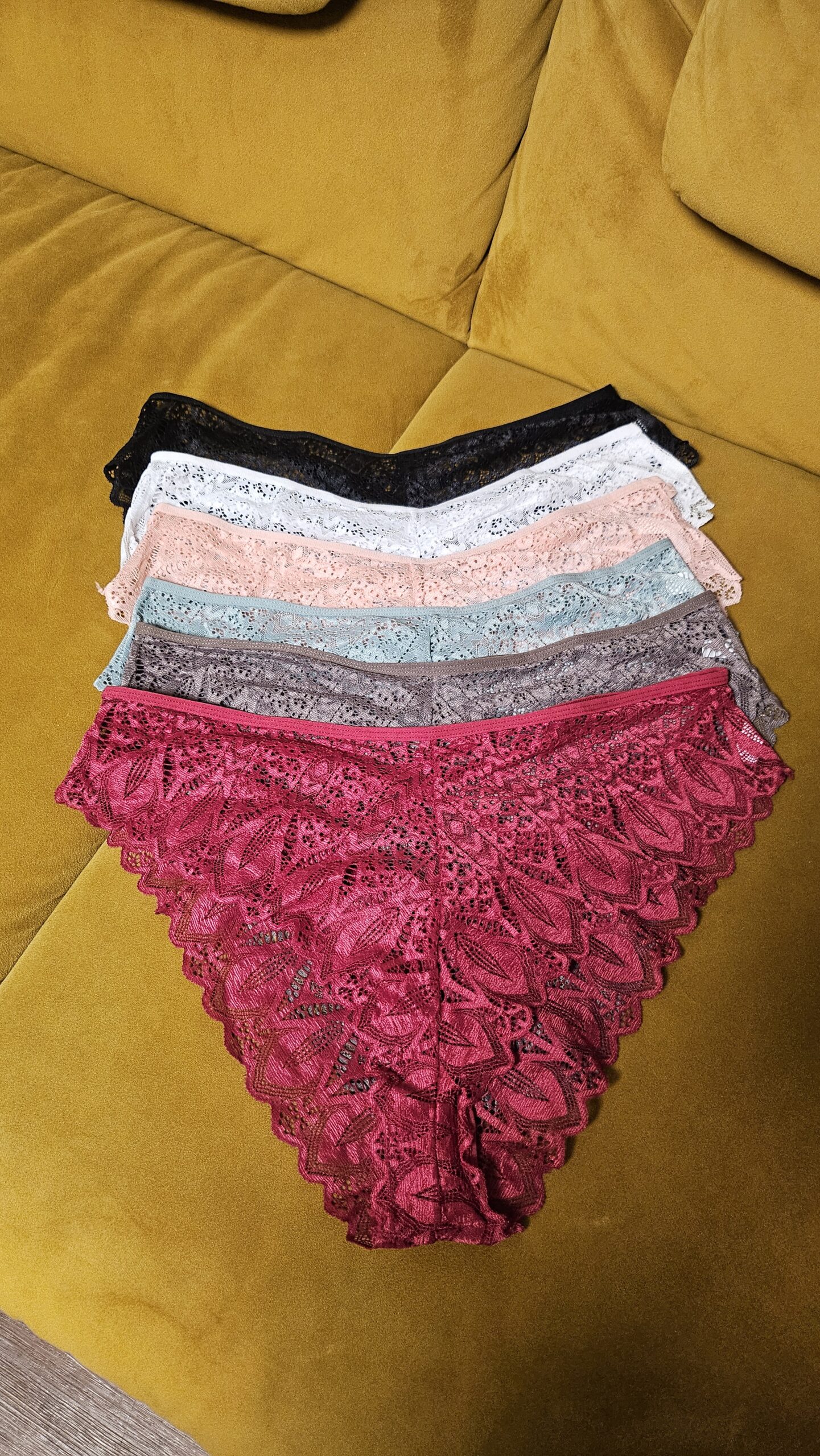 Ich biete dir diesen zarten Slip in drei unwiderstehlichen Farben an – und du darfst wählen, welche Seite von mir du sehen möchtest.